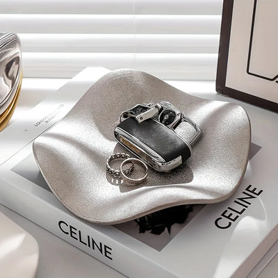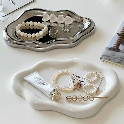 Silver Ceramic Plate Dish Irregular Tray Decorative Tray Storage Plate Household Snack Dish Shooting Props Shop Display