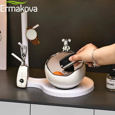 Ceramic Bear Tray Statue Accessory Storage Key Holder Candy Bowl Jewelry Earrings Suitable for Home Modern Table Office Decor