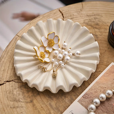 Elegant Jewelry Tray Ceramic Ruffle Decorative Tray Perfect Modern Jewelry Bowl with Scalloped Design for Coffee Table Organizer