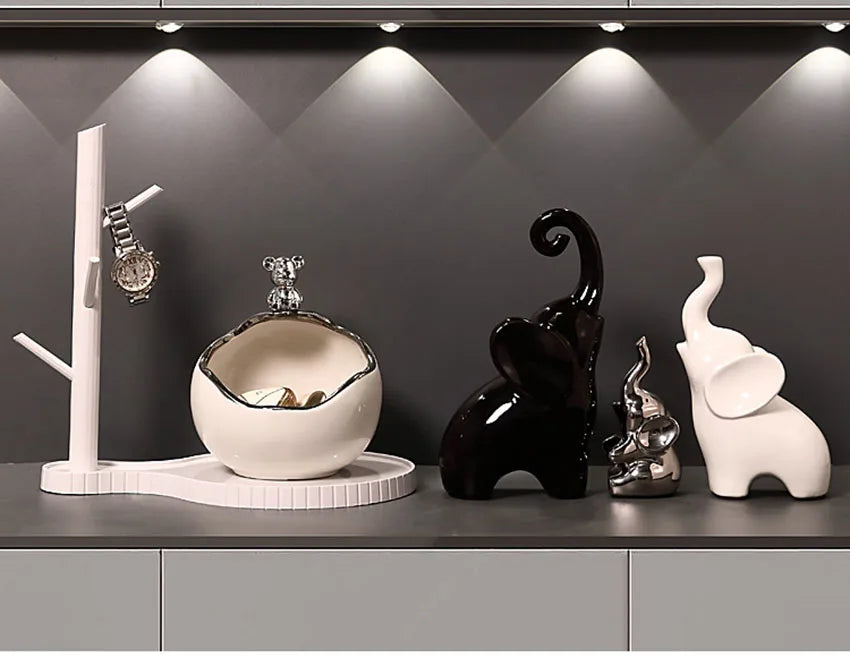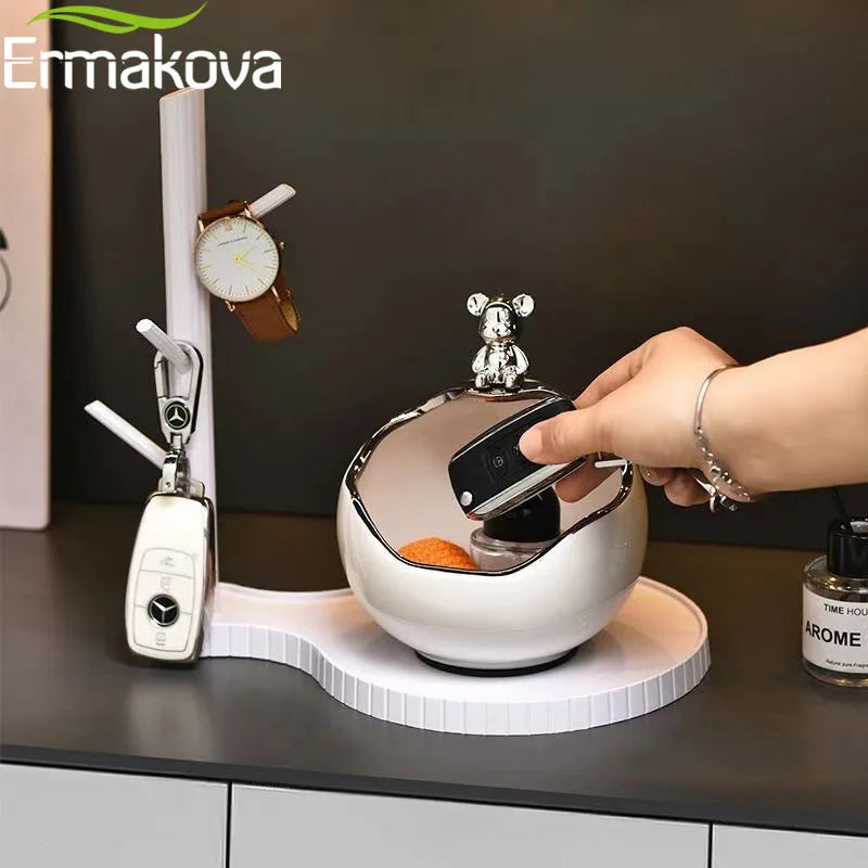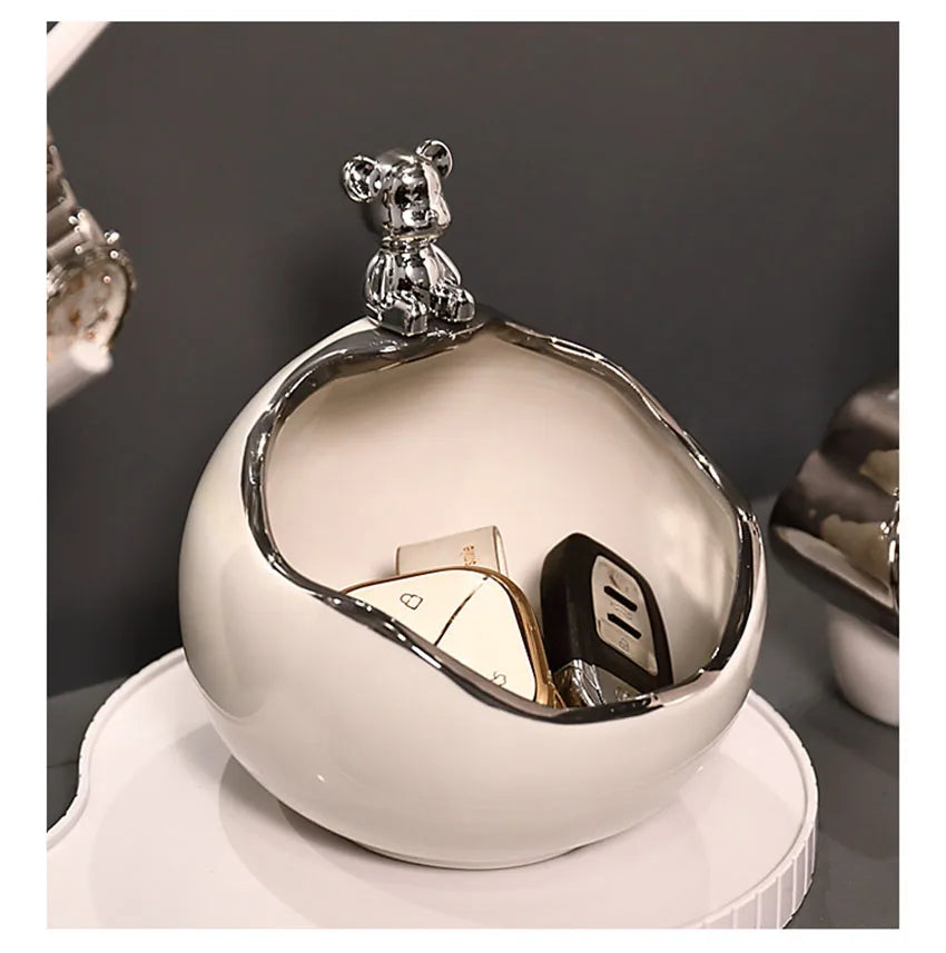 3. Bear Decorative Bowl: Multifunctional and stylish, this bowl is ideal as a key bowl for entryway table, serves as a candy bowl for office, or transforms into a fun candy dish for gatherings. It's also perfect for holding jewelry and cosmetics on a dressing table, making it a versatile addition to any space.