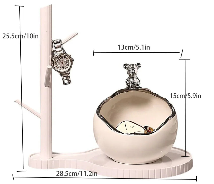 1. Bear Statues Key Bowl: Discover the charm of our decorative ceramic bowl, crowned with an adorable bear figurine. Measuring 5.51 inches/14cm in diameter and 7.28 inches/18.5cm in height, this sophisticated piece is a standout accent for any room, adding a touch of elegance and whimsy.