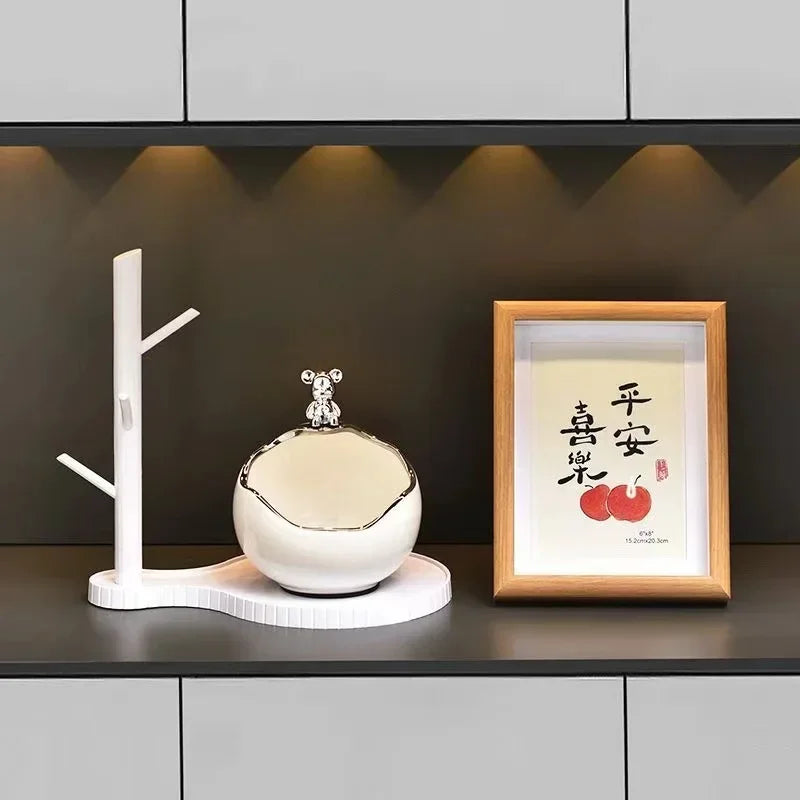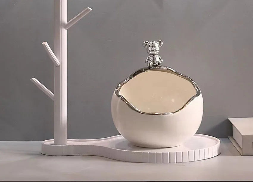 Ceramic Bear Tray Statue Accessory Storage Key Holder Candy Bowl Jewelry Earrings Suitable for Home Modern Table Office Decor