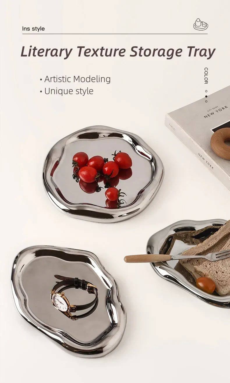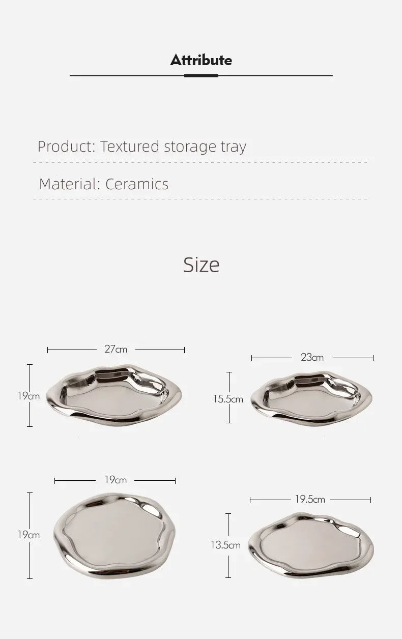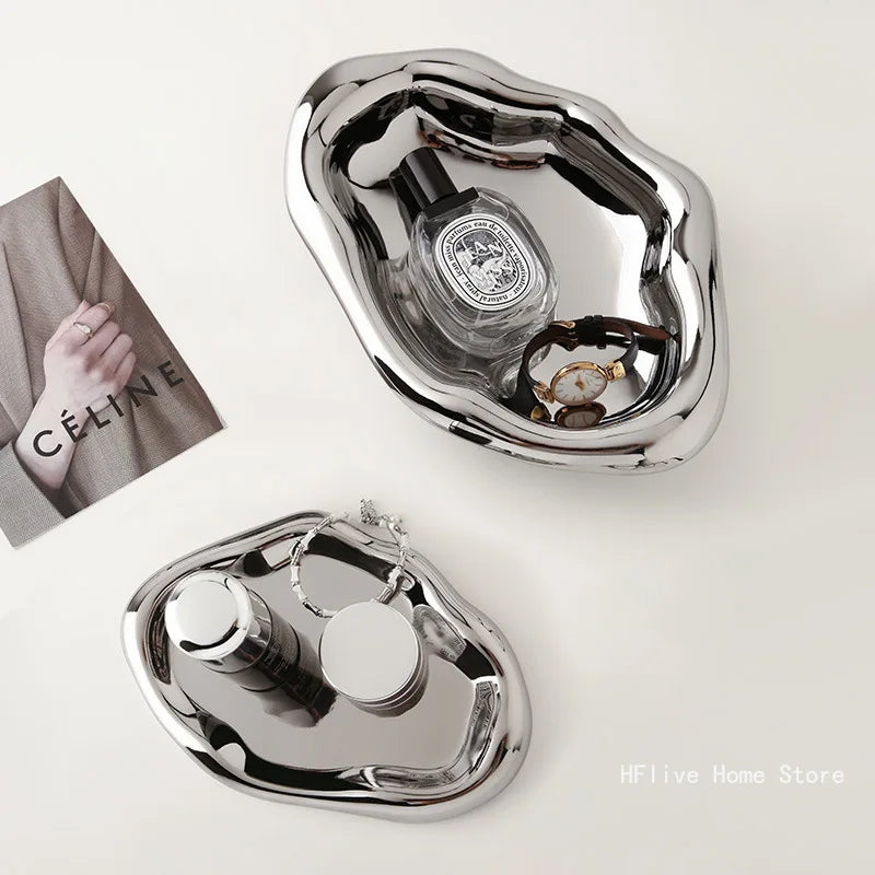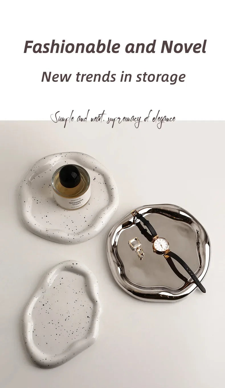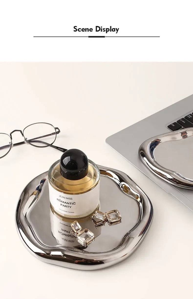 Nordic Silver Plated Ceramic Dish Irregular Tray Decorative Jewelry Organizer ins Creative Tray Luxury Ceramic Storage Tray