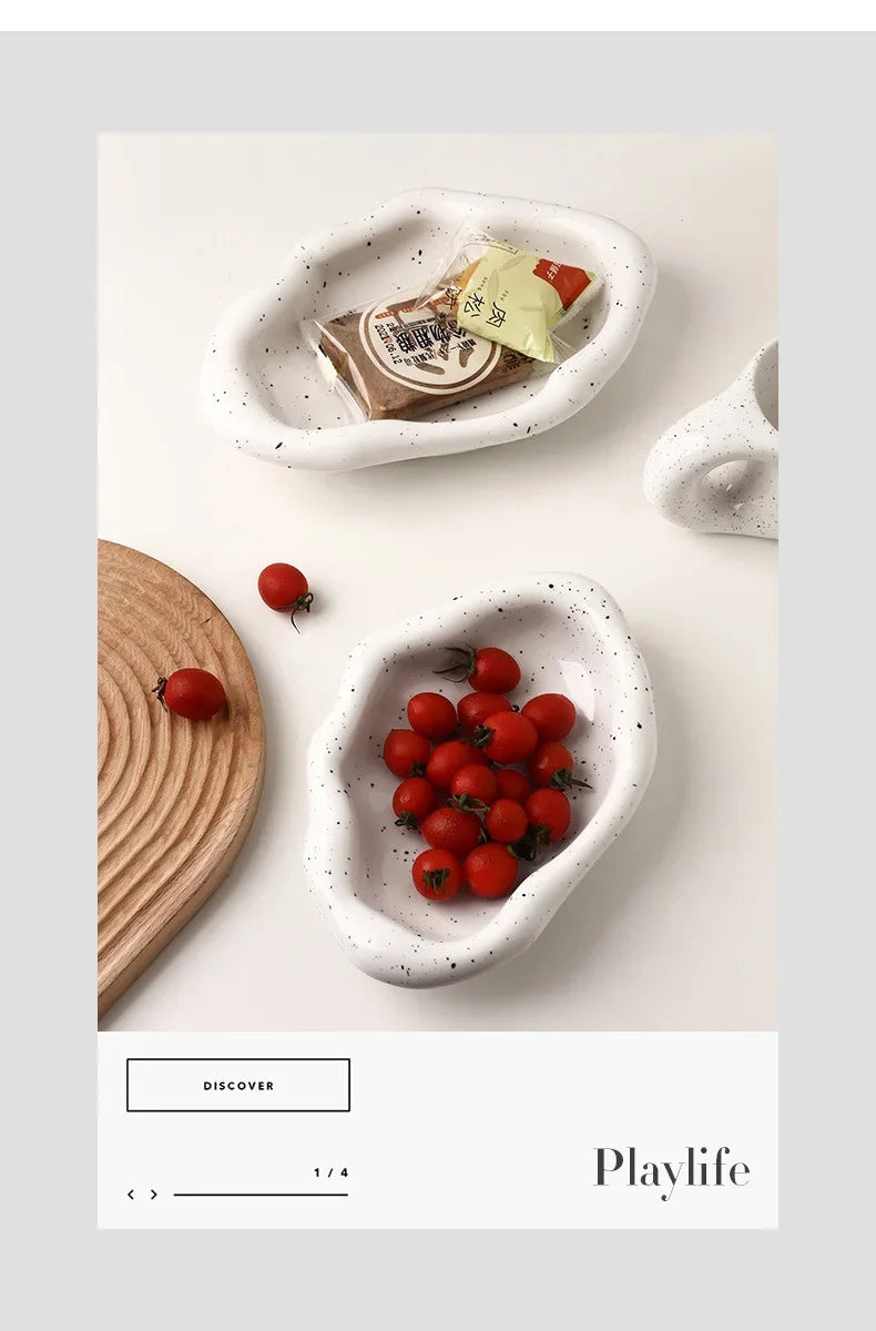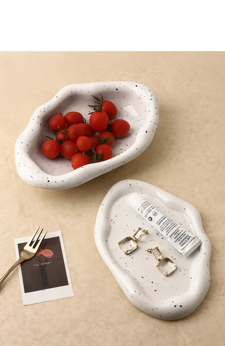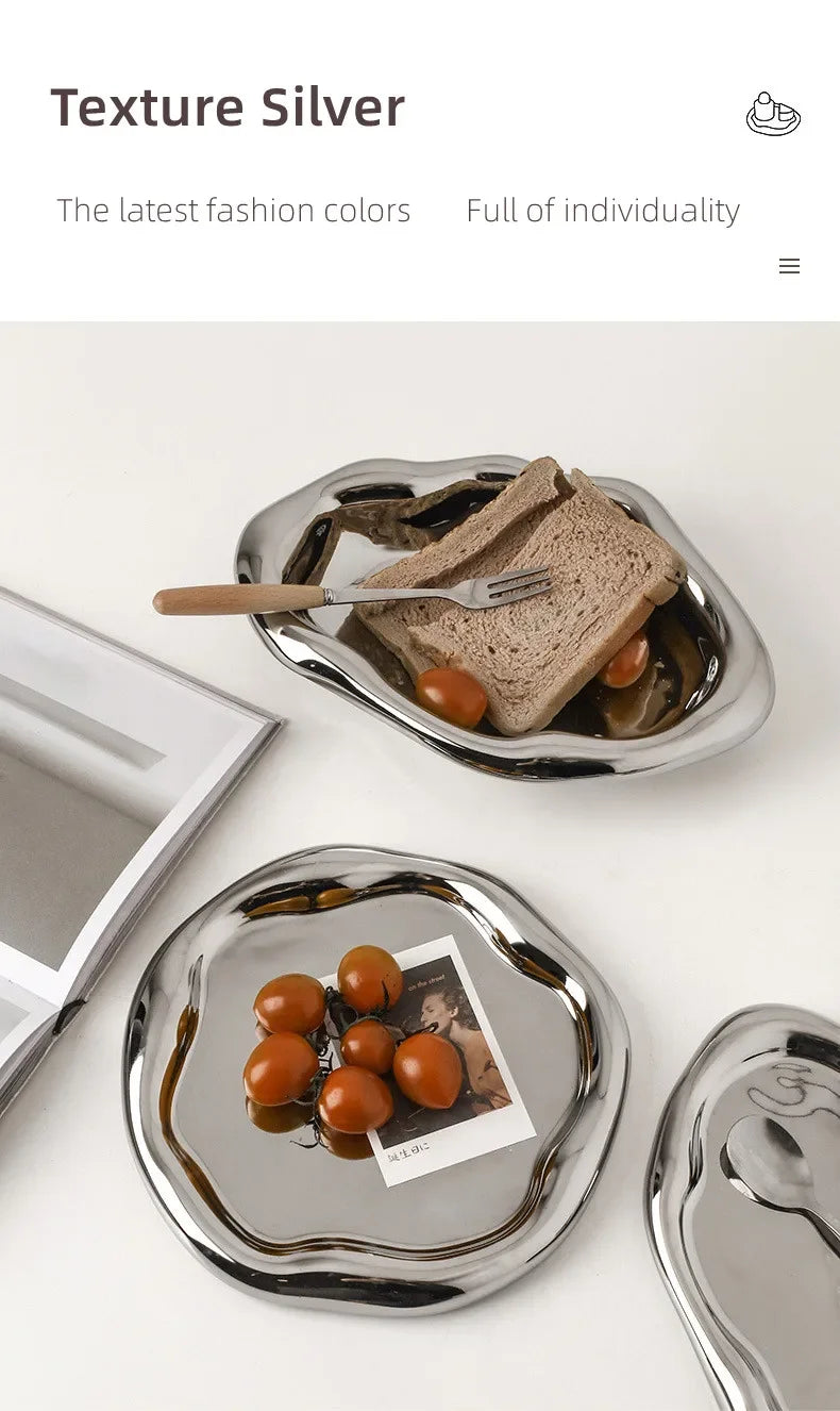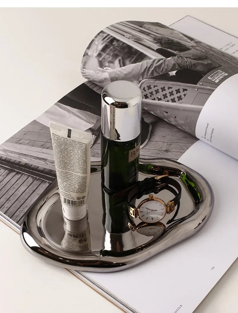 Nordic Silver Plated Ceramic Dish Irregular Tray Decorative Jewelry Organizer ins Creative Tray Luxury Ceramic Storage Tray