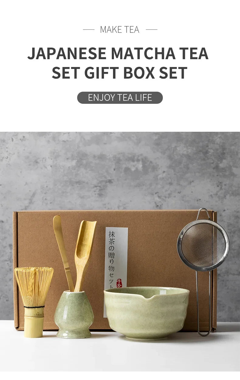 Japanese Matcha Blender Ceremony 4/5/6pcs Set Ceramic Chawan Bowl Bamboo Whisk and Tea Scoop Matcha Tools Kit for Tea Lovers