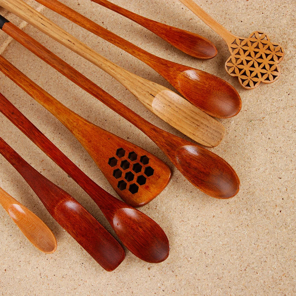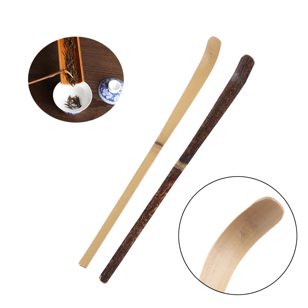 Wood Tea Sticks Matcha Spoon Teaware Teaspoon Handmade Black Bamboo Leaf Spatula Guide Kitchen Tool Spice Gadget Cooking Utensil