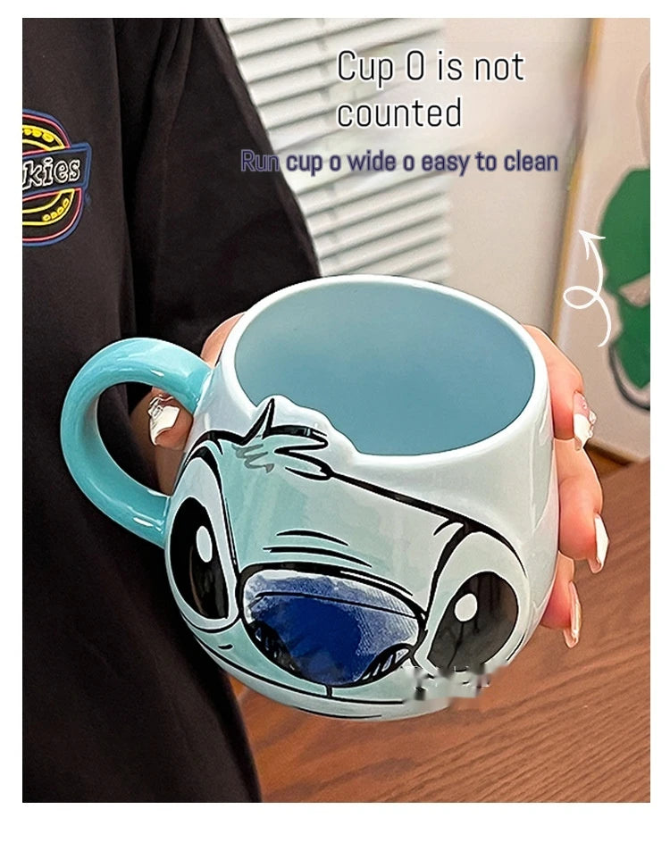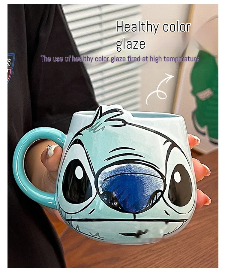 Disney Stitch New Cute Girl High Beauty Fashion Cartoon Creative Pattern Couple Milk Coffee Ceramic Mug Home Dormitory Gift Cup