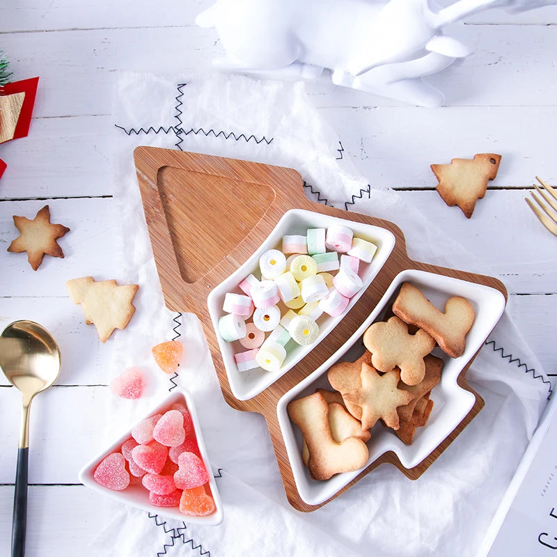 Christmas Tree Dessert Plate Set Cake Fruit Candy Ceramic Dish Porcelain Plates Tray Set