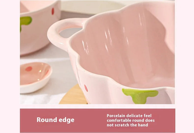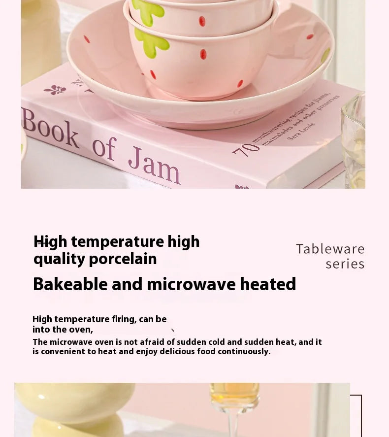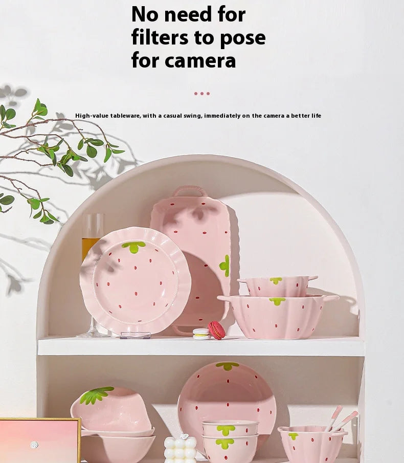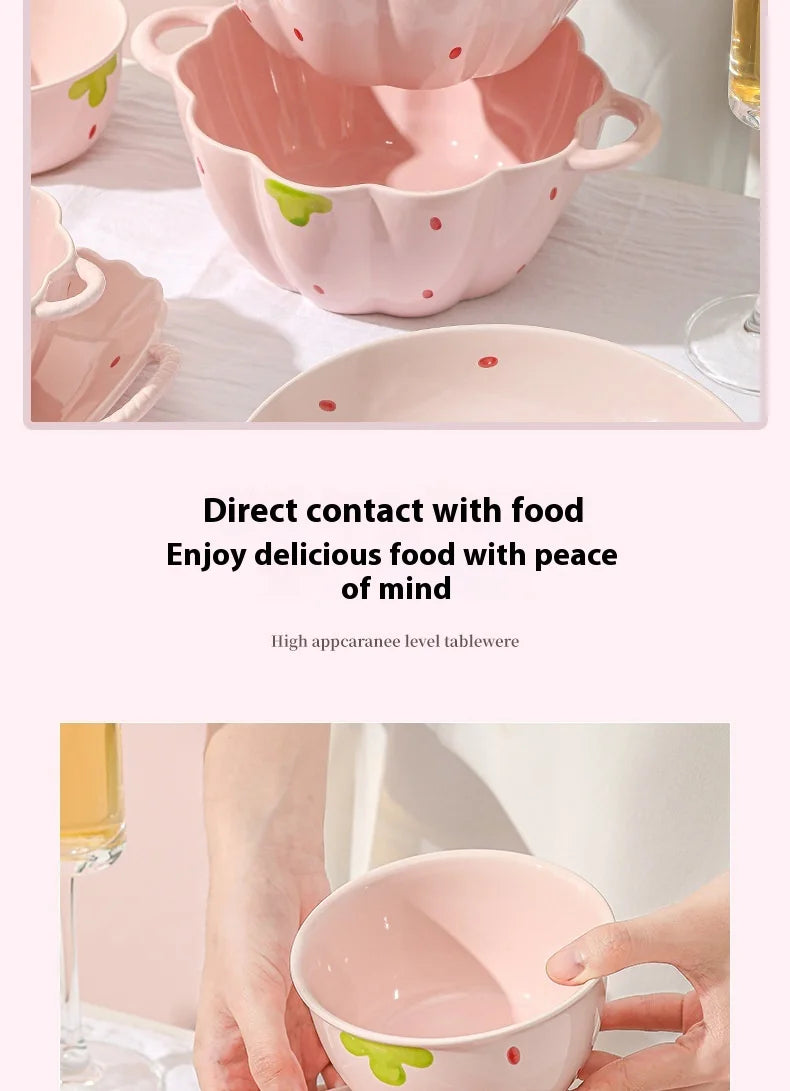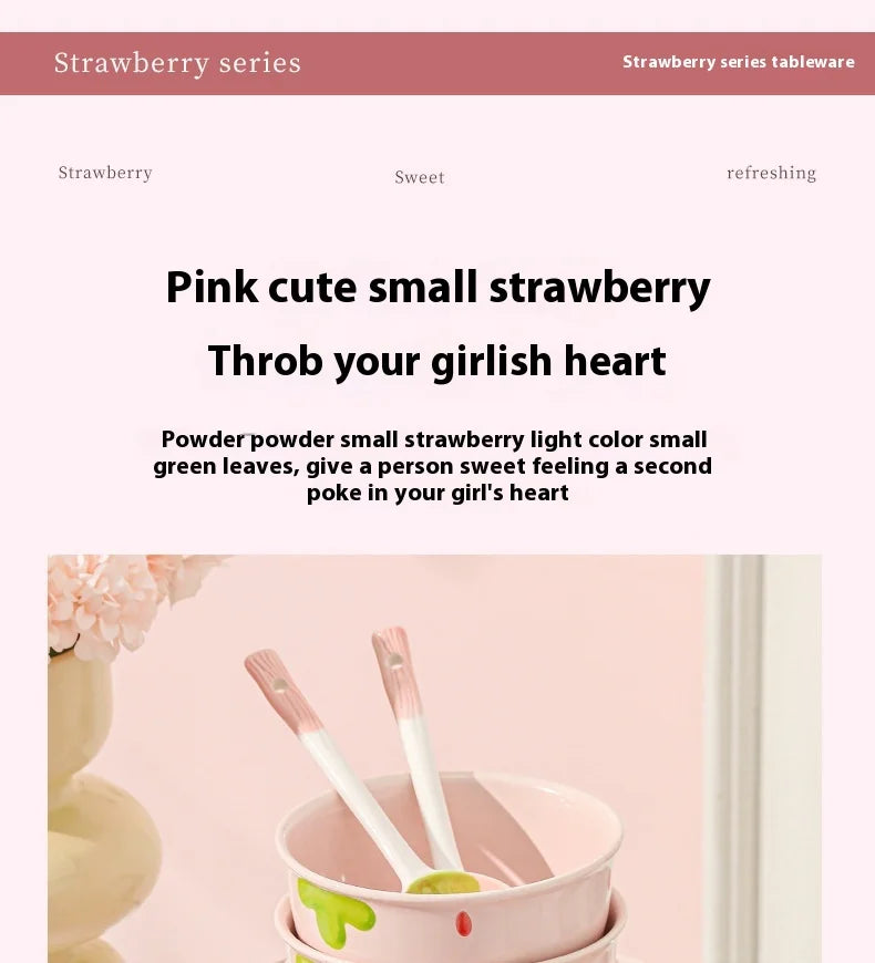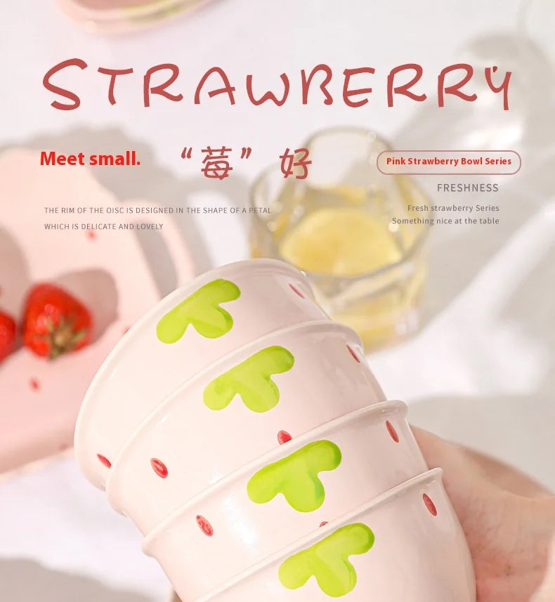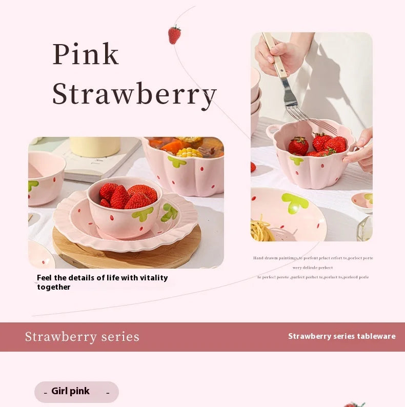 Cute Strawberry Ceramic Bowl Set For Home Use High Aesthetic Instant Noodles Salad Dessert Dining Tableware Kitchen Supplies