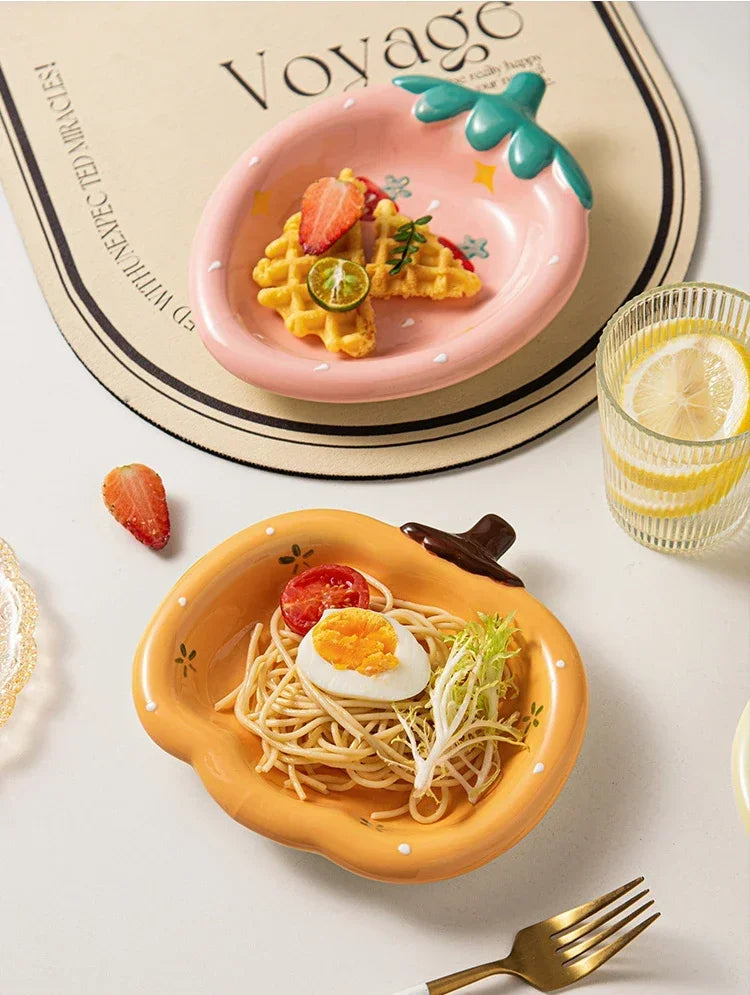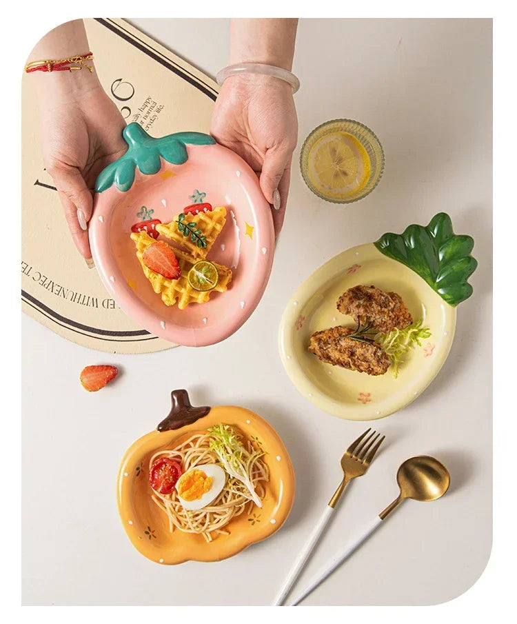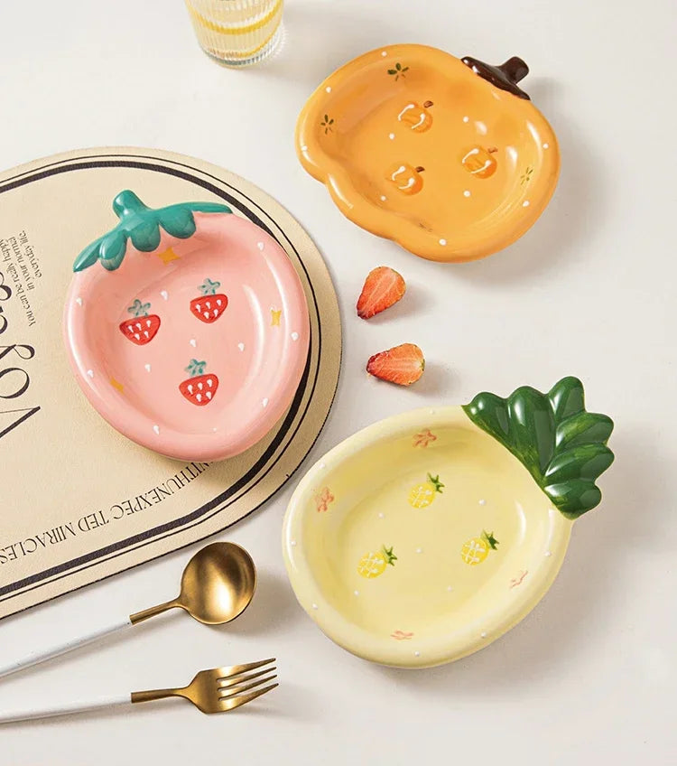 Fruit Plates Ceramic Household Cute Dessert Plates Salad Plates Home Desktop Fun Decoration Plates Mini Trays Kitchen Oil Plates