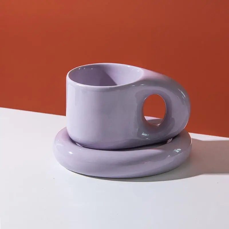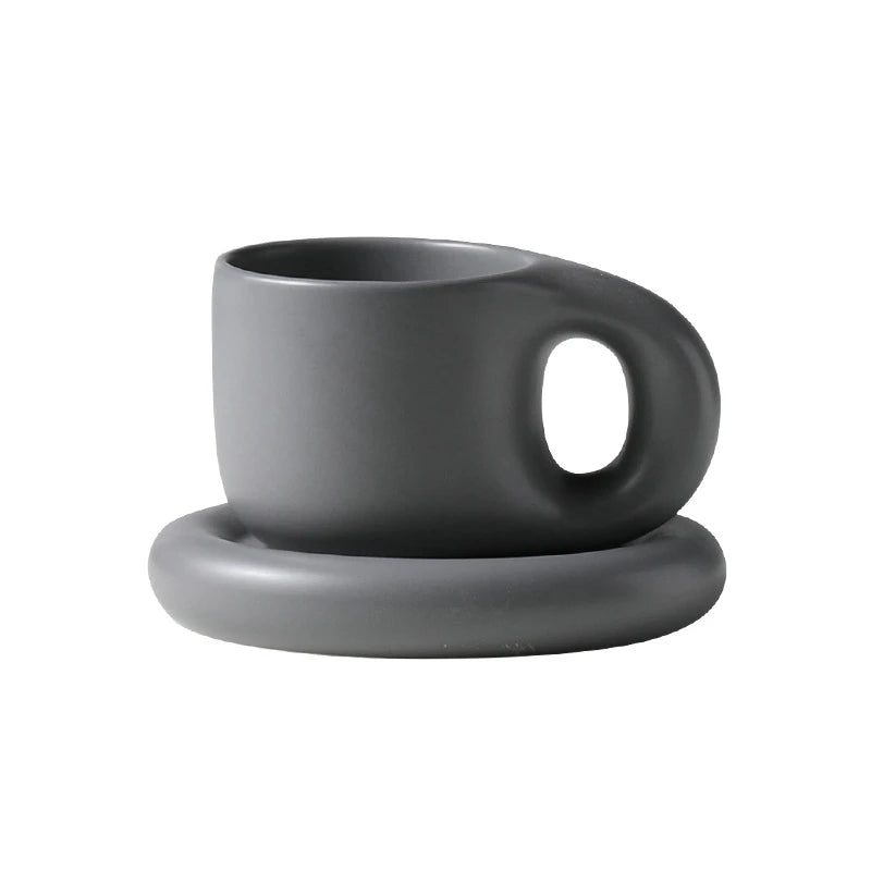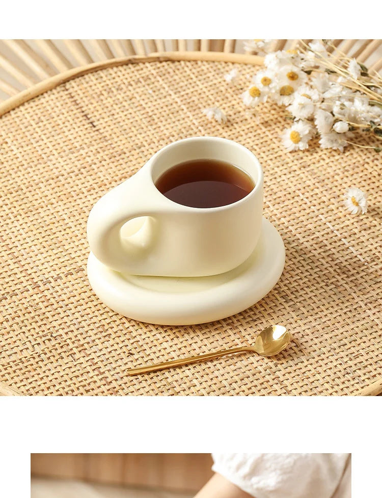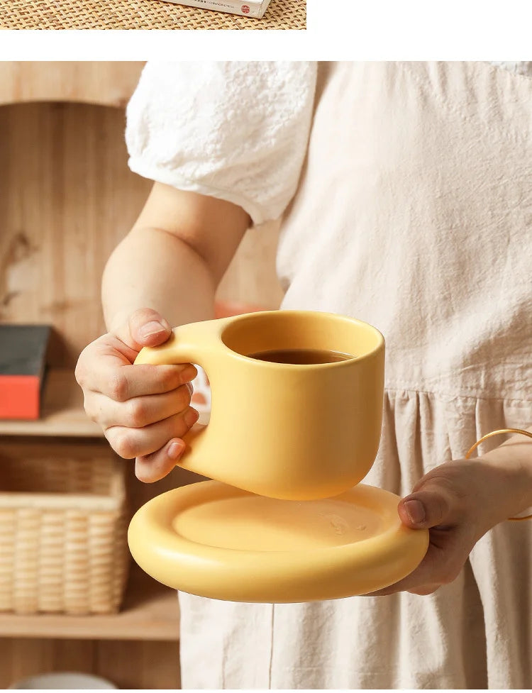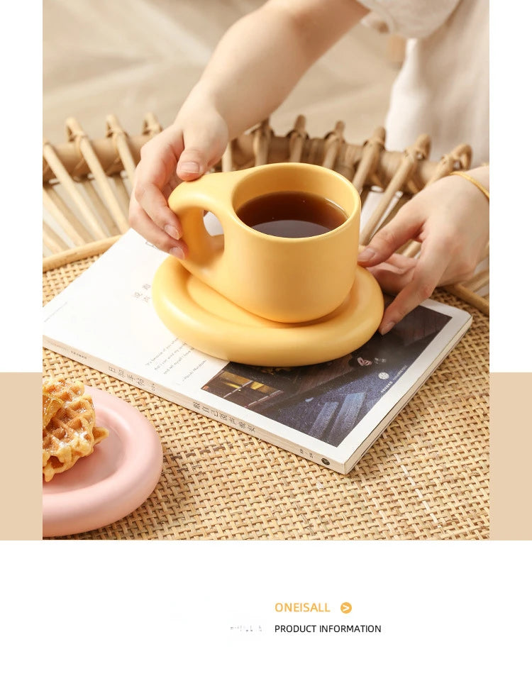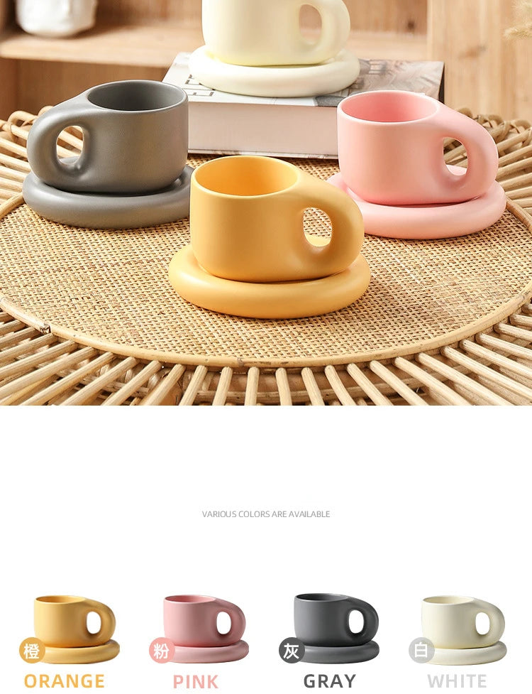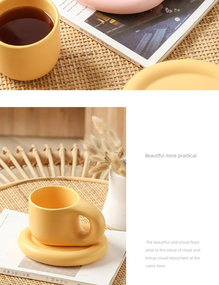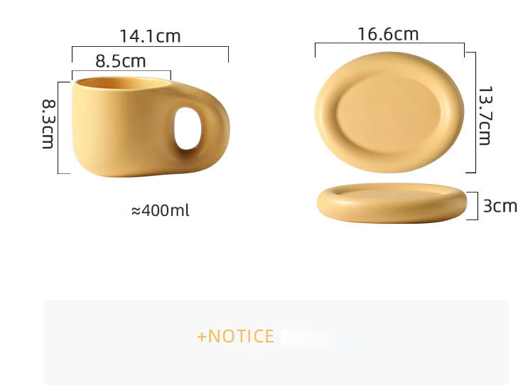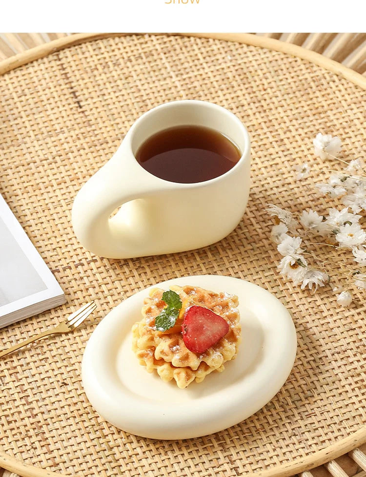 400ml Fat Handmade Chubby Mug Creative Nordic Home Decoration Oval Plate Personalized Ceramic Cup Saucer Coffee Tea Milk Cake