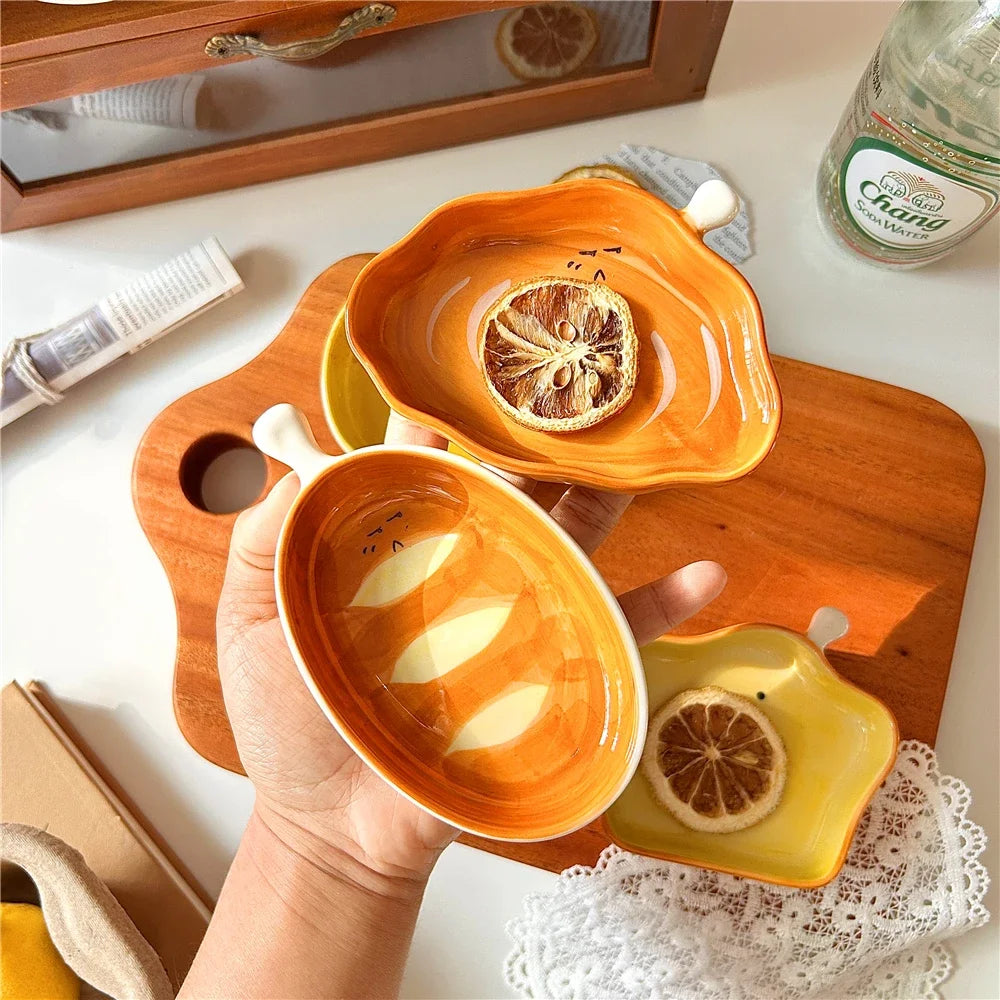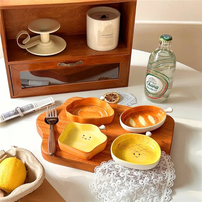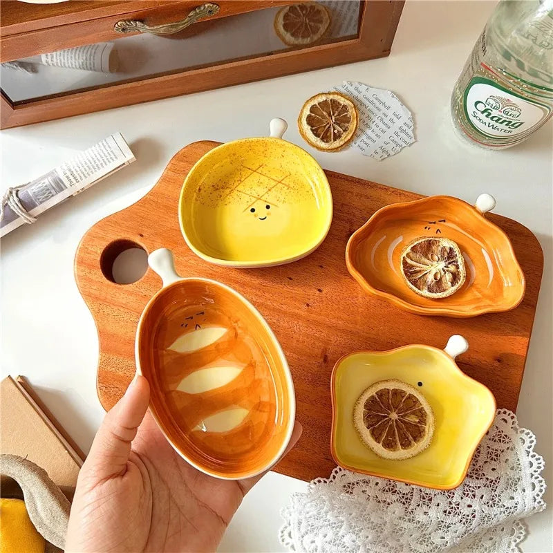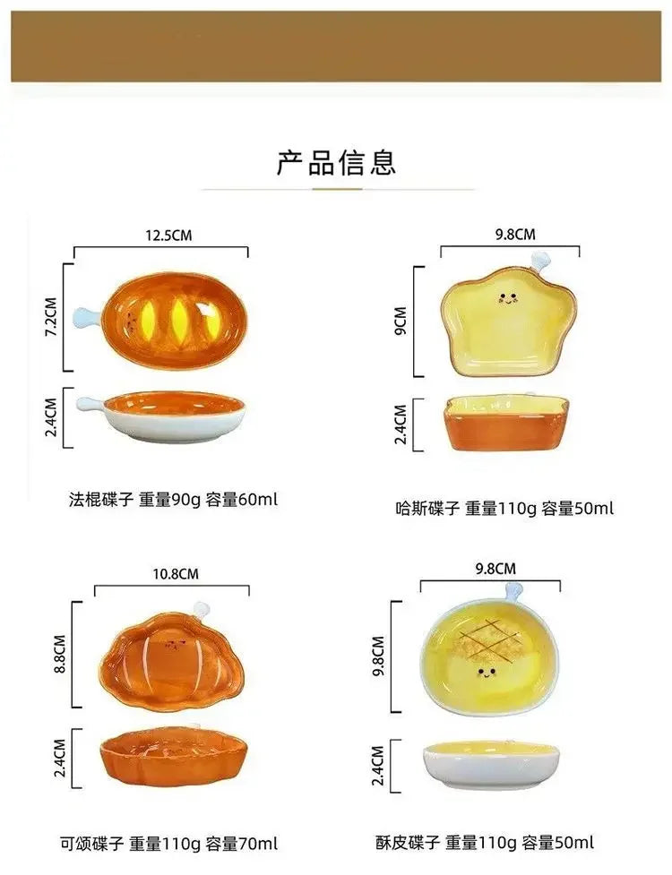 4pcs ceramic side dishes, small dipping saucers, mini small plates, cute bread shape tableware