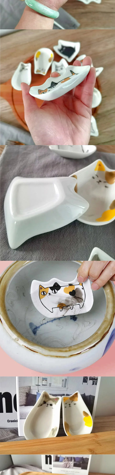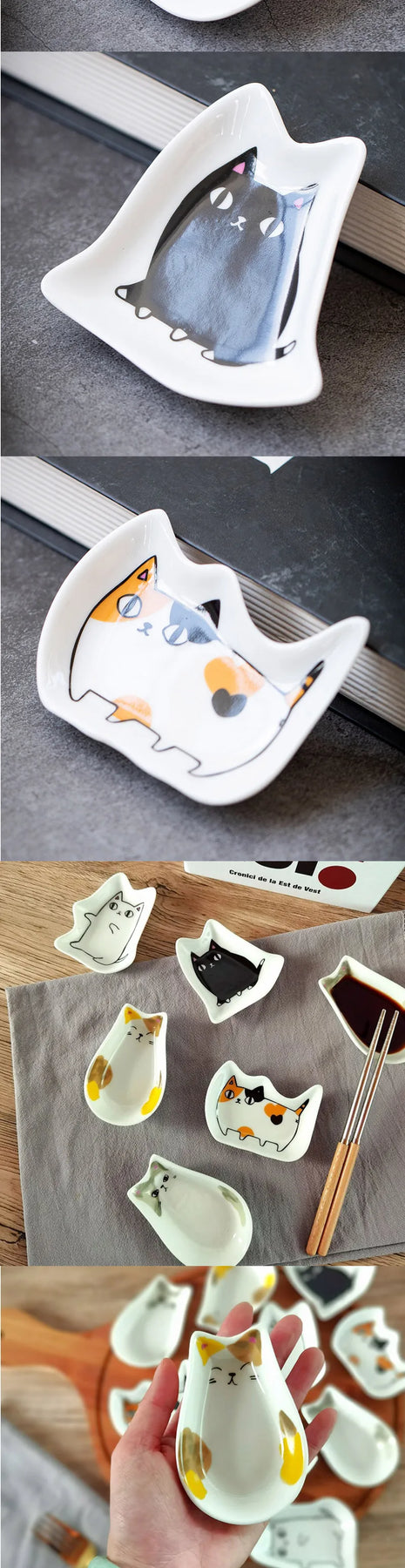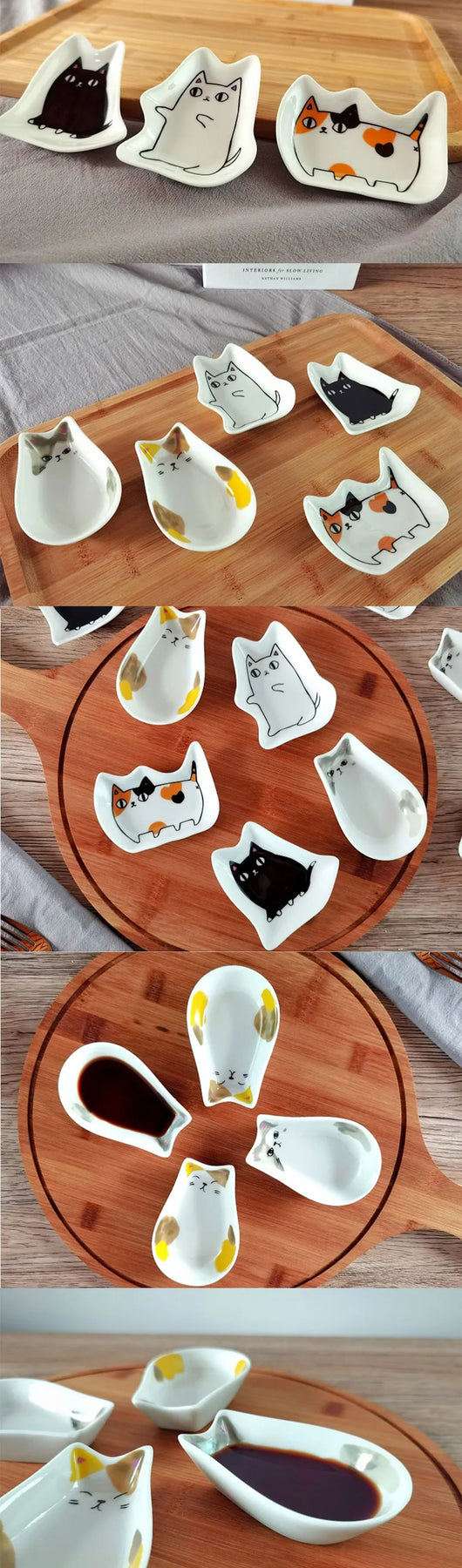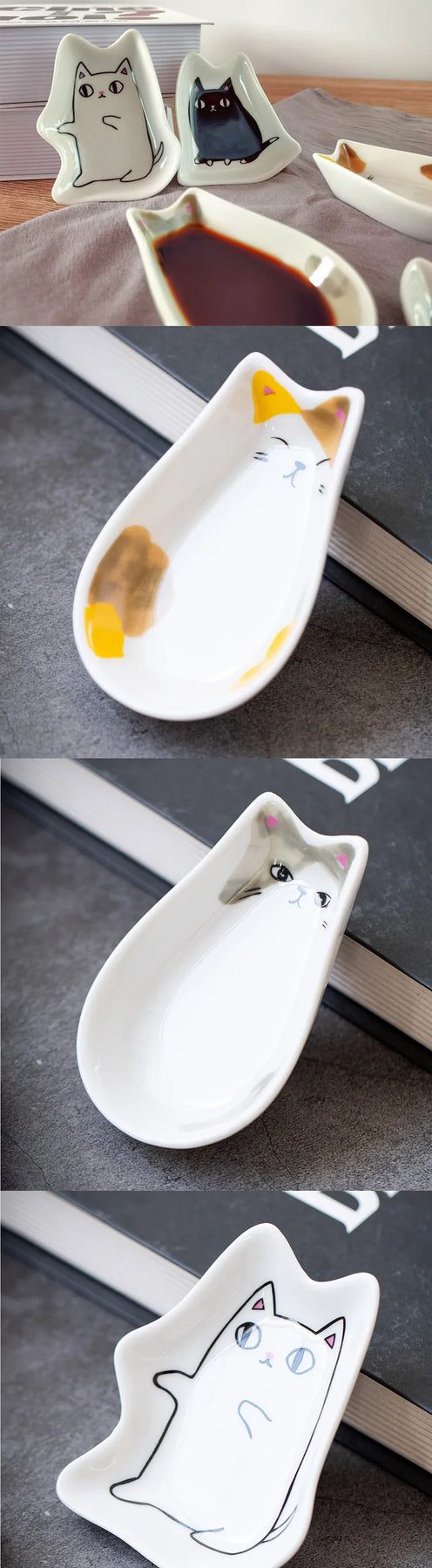 Ceramic Seasoning Dish Create Meaning Dish Japanese Cartoon Cute Cat Sauce Vinegar Dish Decoration Piece Wasabi Soy Sauce Dish